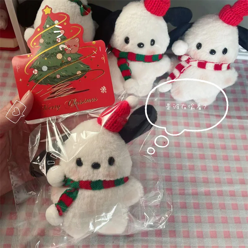 New Christmas Scarf Pochacco Anime Sanrio Keychain Kawaii Bow Tie Pochacco Children Stuffed Toys Pendant Keyring Birthday Gifts